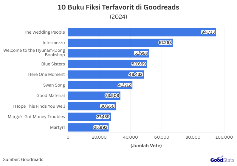 Minat tersebut juga tergambar jelas dalam daftar buku fiksi terfavorit pilihan pengguna Goodreads, yang menunjukkan bagaimana selera pembaca bergerak dan judul-judul apa saja yang paling banyak memikat perhatian pada tahun 2024.