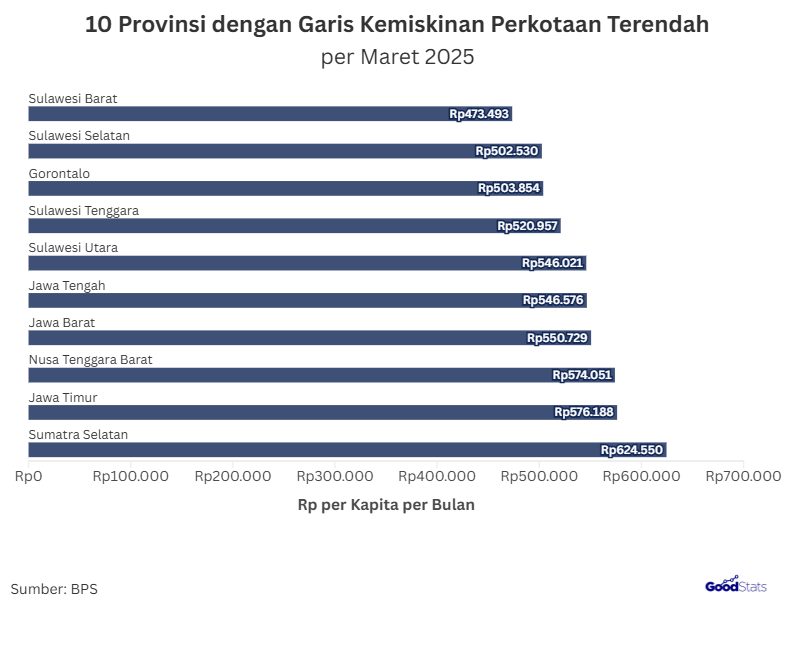 Rendahnya garis kemiskinan di provinsi-provinsi ini sebagian besar disebabkan oleh pasokan pangan lokal yang stabil dan efisiensi sistem distribusi. Keberadaan provinsi-provinsi di Jawa dan Sulawesi dalam daftar ini menegaskan bahwa daerah yang dekat dengan pusat produksi dan memiliki akses infrastruktur yang baik akan cenderung memiliki biaya hidup yang lebih rendah.