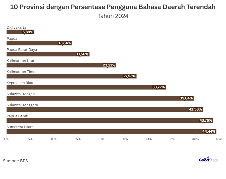 Berikut adalah ulasan 10 provinsi dengan persentase penggunaan bahasa daerah terendah di Indonesia.