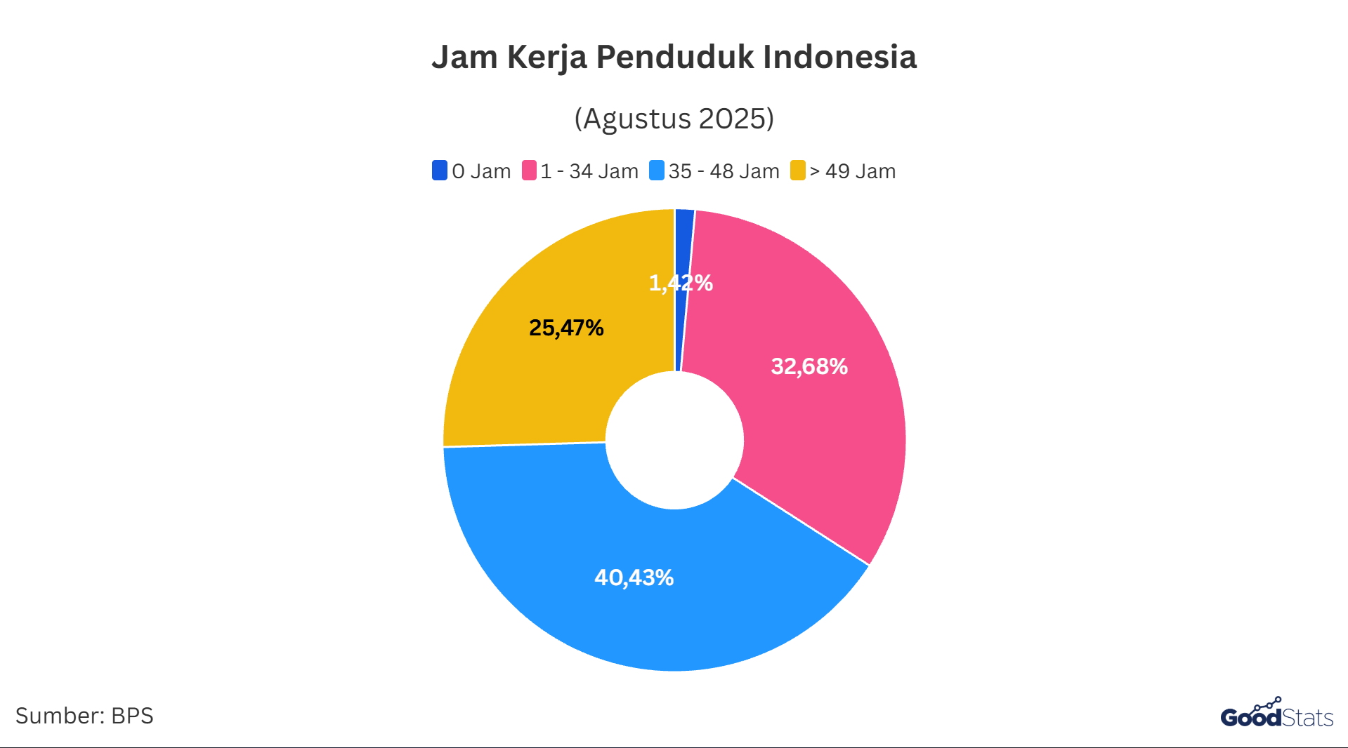Badan Pusat Statistik (BPS) melalui Booklet Sakernas Agustus 2025 merekam kondisi ketenagakerjaan Indonesia menjelang akhir tahun. Salah satu temuan yang cukup menonjol adalah soal jam kerja penduduk, yang menunjukkan masih besarnya proporsi pekerja dengan durasi kerja di atas batas normal.