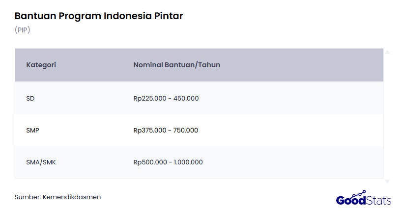 Berikut rincian nominal yang didapatkan dari program bantuan PIP: