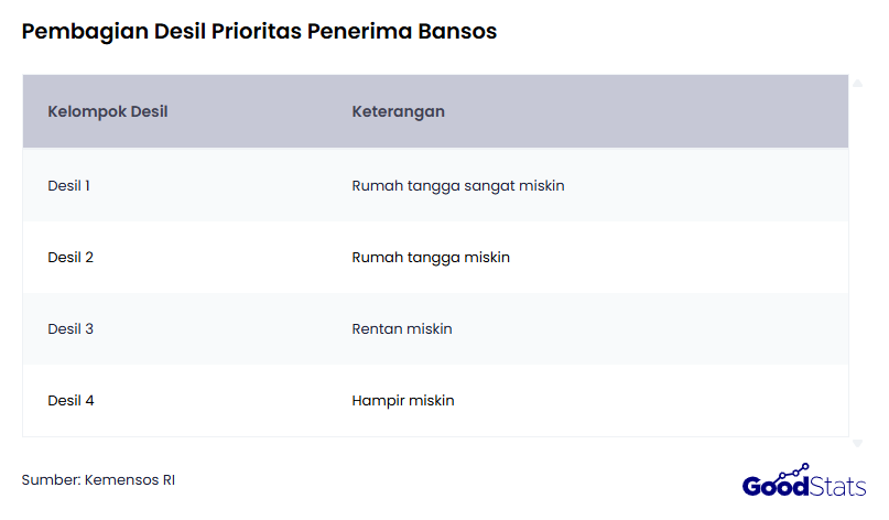 Berikut pembagian desil 1–4 yang menjadi prioritas penerima bansos: