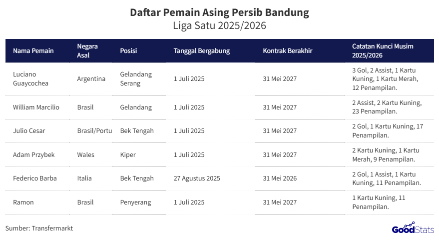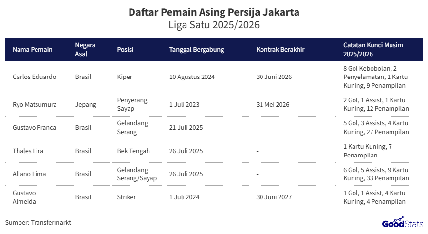 Dari daftar pemain asing yang ada, terlihat jelas bahwa pemain dari Brasil masih mendominasi kuota di sebagian besar klub. Kehadiran mereka menempati hampir semua posisi, mulai dari kiper, bek, gelandang, hingga penyerang, mencerminkan kepercayaan klub-klub Indonesia terhadap kualitas teknis pemain Brasil.