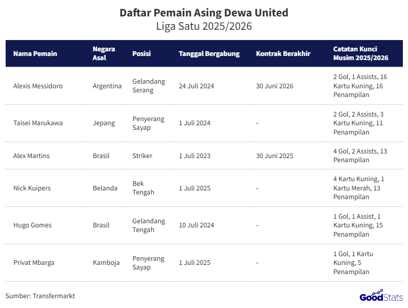 Dewa United menampilkan perpaduan pemain asing yang solid, termasuk gelandang serang dari Argentina dan penyerang sayap dari Jepang.