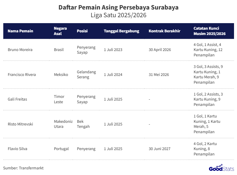 Persebaya Surabaya memiliki komposisi pemain asing yang beragam, termasuk talenta dari Timor Leste dan Makedonia Utara.