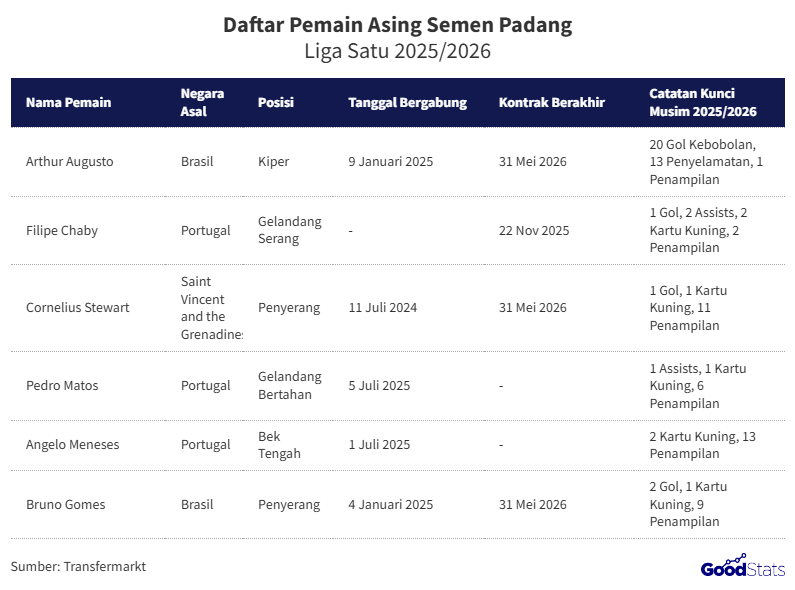 Dari sisi administrasi, beberapa pemain penting memiliki masa kontrak yang akan segera berakhir. Contohnya adalah kiper Semen Padang, Arthur Augusto, yang kontraknya berakhir pada Mei 2025, dan gelandang Portugal Filipe Chaby yang kontraknya hanya hingga November 2025. Status kontrak ini tentu akan menjadi isu panas menjelang bursa transfer paruh musim.