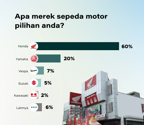 Dalam survei GoodStats berjudul Pola Perilaku Masyarakat Indonesia dalam Memilih Sepeda Motor di 2025, Honda menempati posisi pertama sebagai merek motor pilihan, dengan 60% responden memilih Honda. Di posisi berikutnya, 20% responden memilih Yamaha. Sementara itu, sisanya memilih Vespa (7%), Suzuki (5%), Kawasaki (2%), dan merek lainnya (6%).