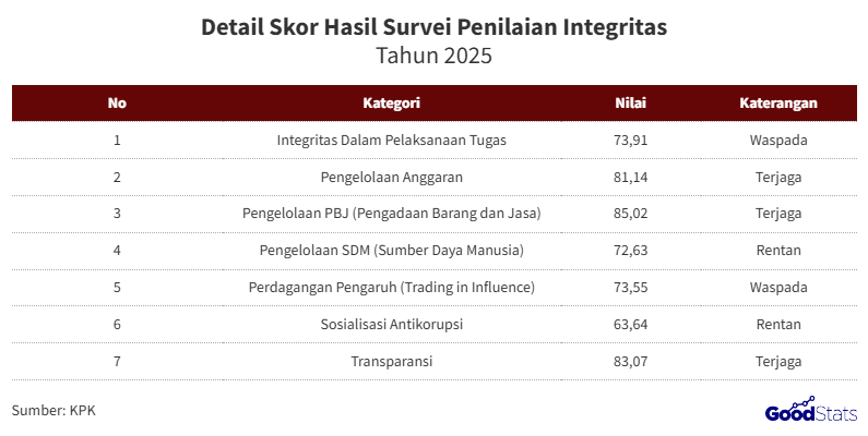 Komisi Pemberantasan Korupsi (KPK) meluncurkan hasil dari Survei Penilaian Integritas (SPI) tahun 2025. Meskipun terjadi peningkatan skor secara nasional, status integritas lembaga publik di Indonesia masih berada dalam kategori rentan, sebuah temuan yang menjadi perhatian utama dalam upaya pencegahan korupsi.