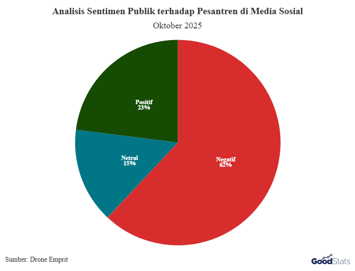 Adapun metode yang digunakan Drone Emprit adalah dengan menganalisis kata kunci di berbagai media sosial seperti X, FB, Instagram, YouTube, dan TikTok pada 6-19 Oktober 2025. Analisis ini mengumpulkan 35.831 sample mentions terkait pesantren.