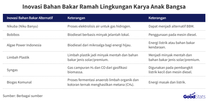 Daftar Bahan Bakar Alternatif Terbaharukan Karya Anak Bangsa