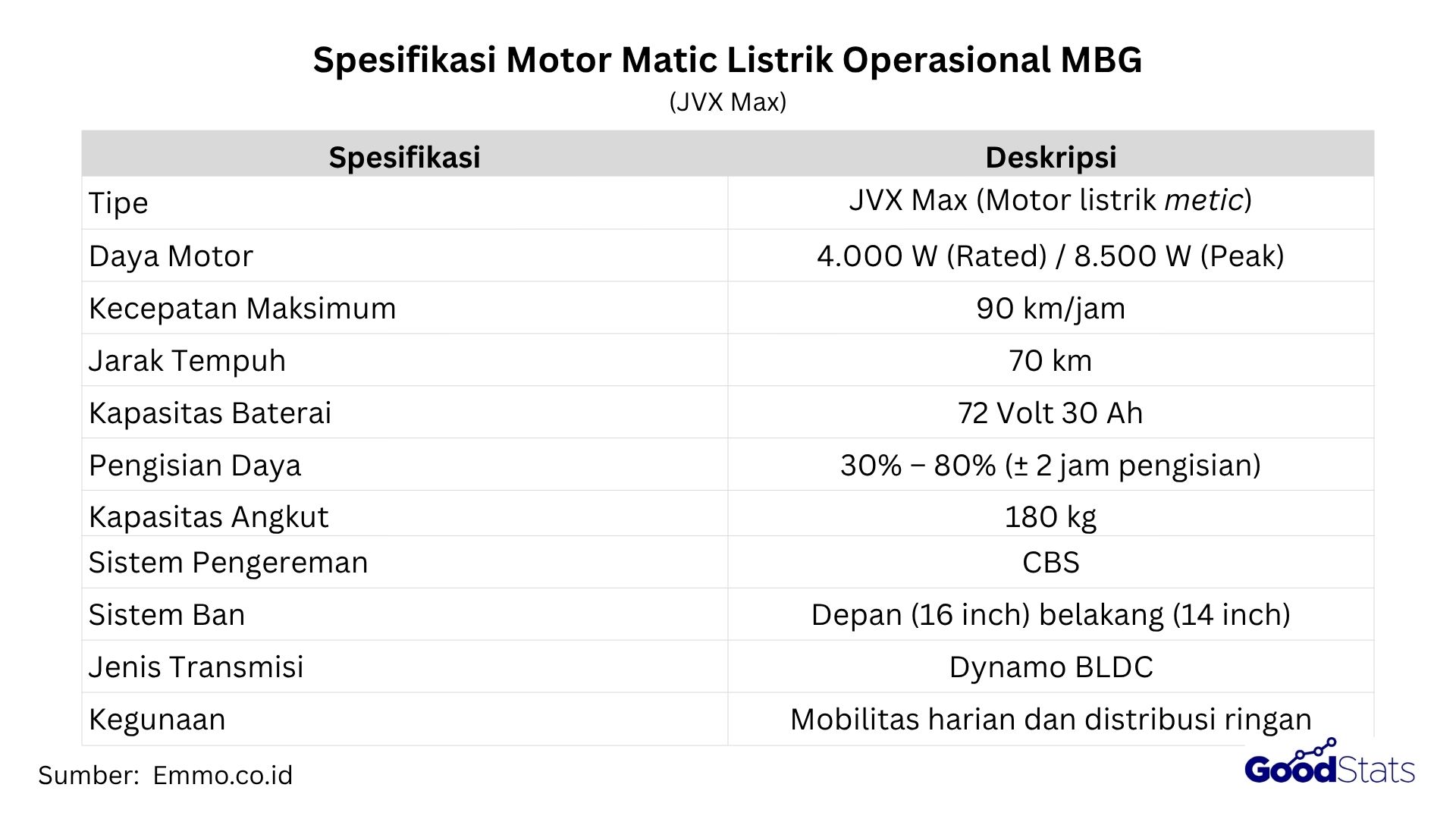 Berikut rincian spesifikasi motor listrik yang digunakan dalam program MBG, baik untuk tipe trail maupun matic.