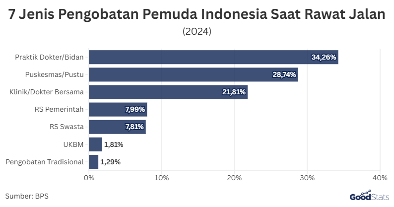 Menurut Badan Pusat Statistik (BPS), sebanyak 12,91% pemuda Indonesia memilih rawat jalan sebagai alternatif pengobatan saat mengalami gangguan kesehatan.