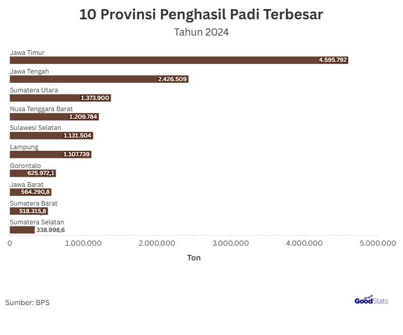 Produksi jagung juga tidak merata di semua provinsi. Menurut BPS, lima provinsi dengan luas panen jagung terbesar di 2024 adalah Jawa Timur, Jawa Tengah, Sumatera Utara, Sulawesi Selatan, dan Nusa Tenggara Barat. Sedangkan produksi jagung (dalam ton jagung kering) paling tinggi datang dari provinsi-provinsi ini juga, terutama Jawa Timur dan Jawa Tengah.